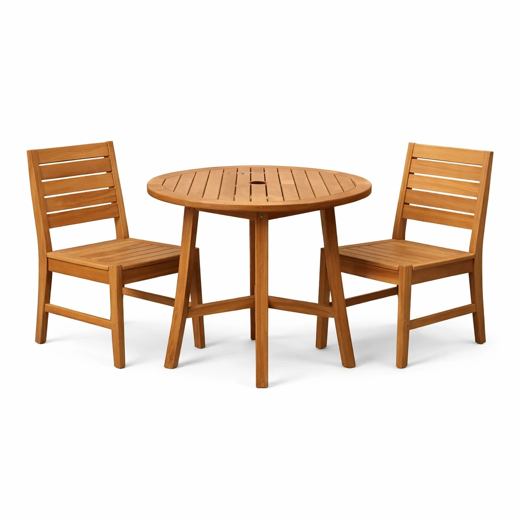Juego de comedor exterior de mesa redonda y sillas de madera de teca