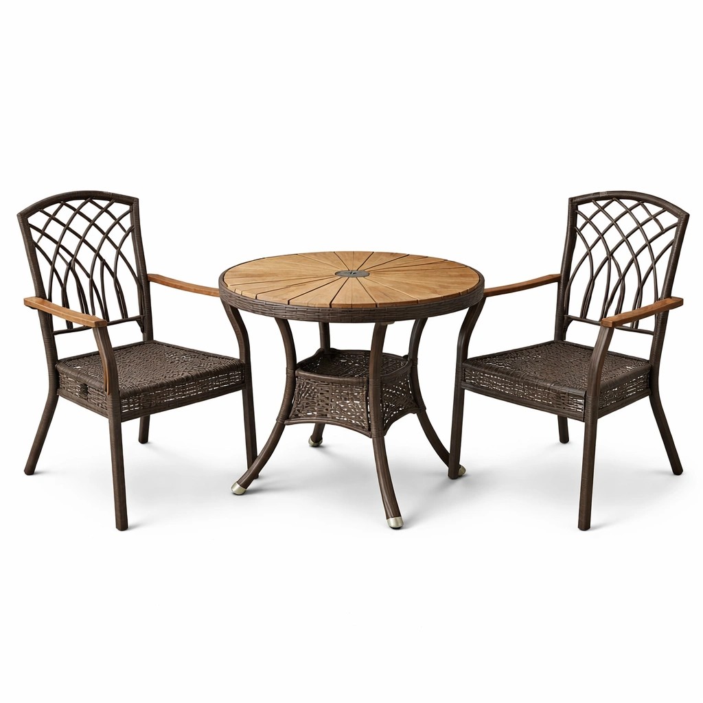 Juego de comedor exterior de mesa y sillas de madera y metal marrón