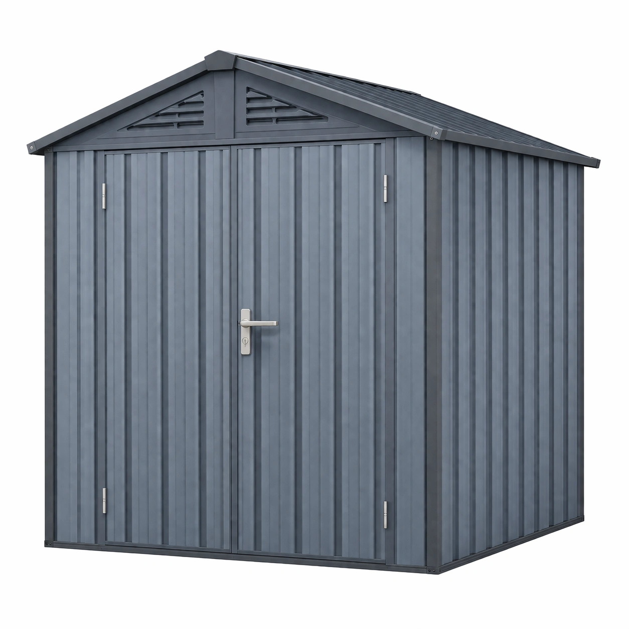 El cobertizo está fabricado de acero galvanizado. Sus dimensiones son 200 cm de largo, 200 cm de ancho y 210 cm de alto, cubriendo un área de 4 m². Su peso es de 75 kg. Está diseñado para el almacenamiento de herramientas y equipos de jardín, ofreciendo suficiente espacio para herramientas de tamaño medio. El color es Gris.